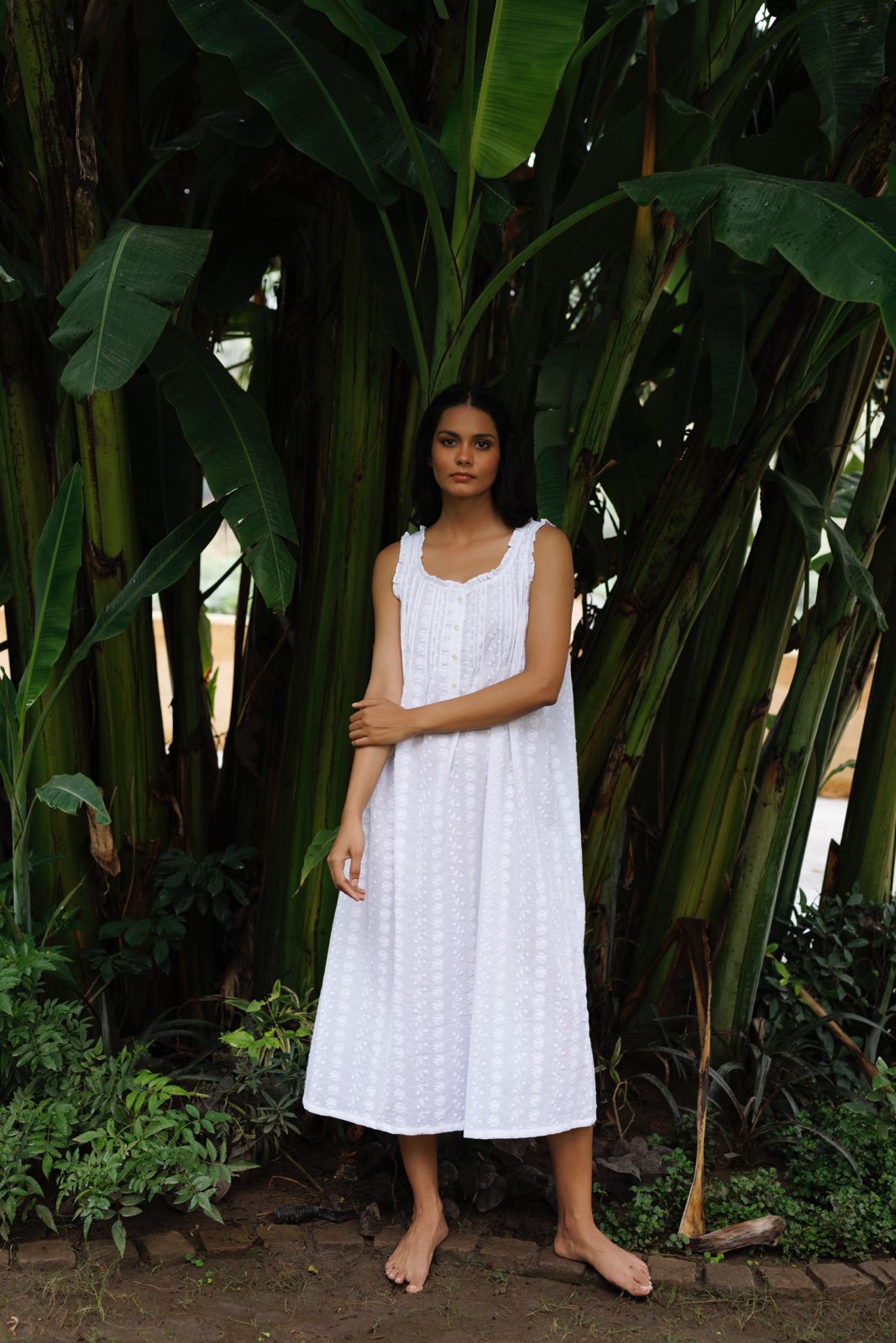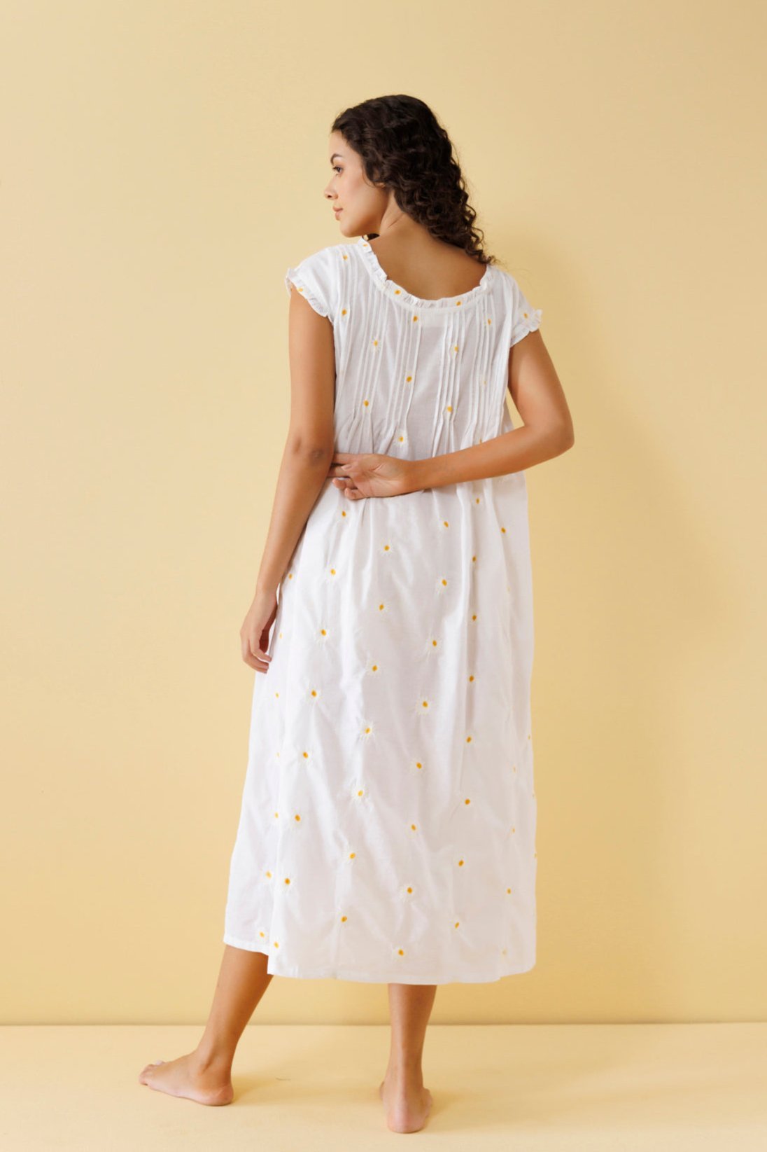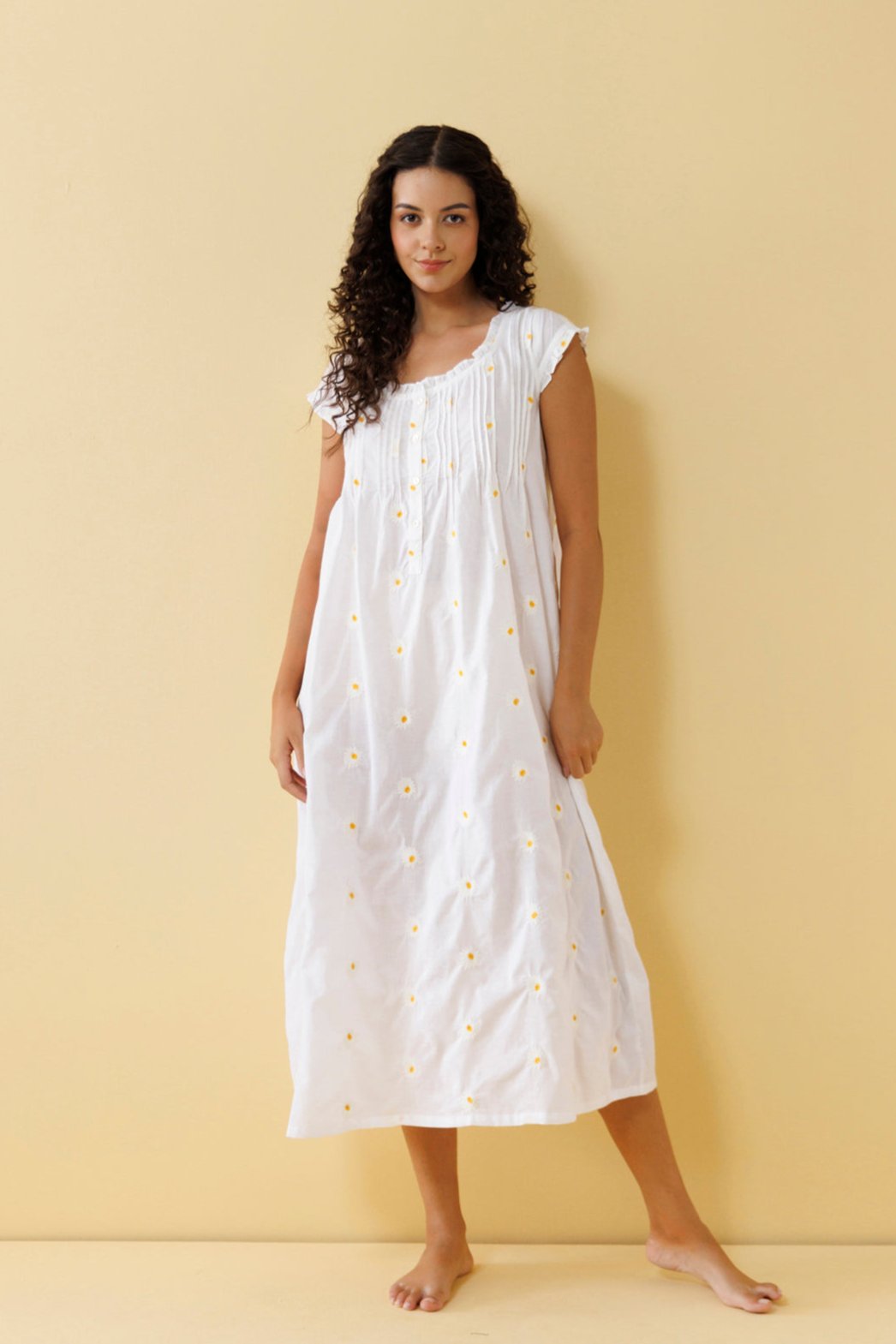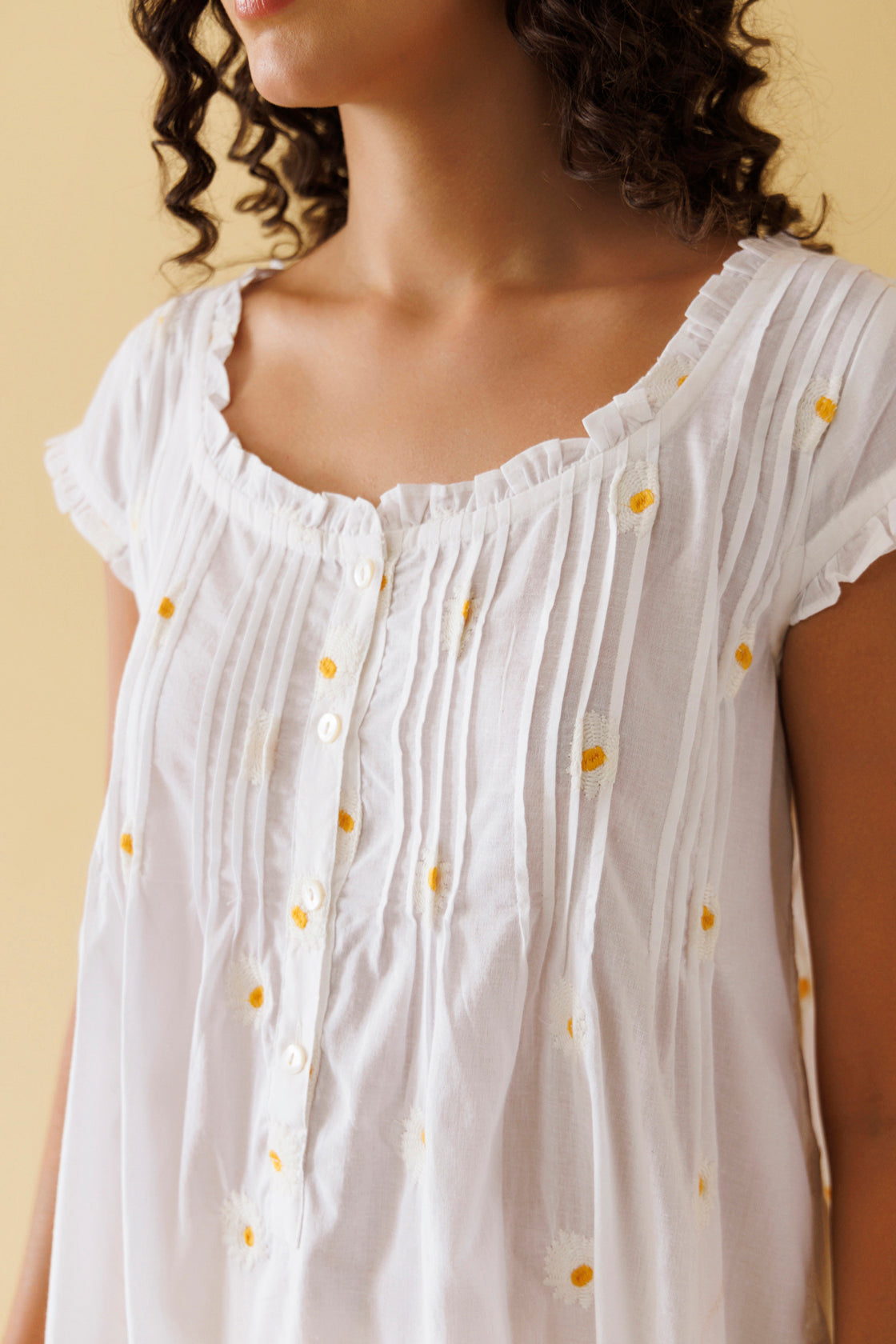 Light as morning air and soft against the skin, Daisy Bell is an ode to effortless femininity. Crafted from pure organic cotton and embroidered with tiny blooms, every pin tuck and frill captures the quiet romance of a new day.