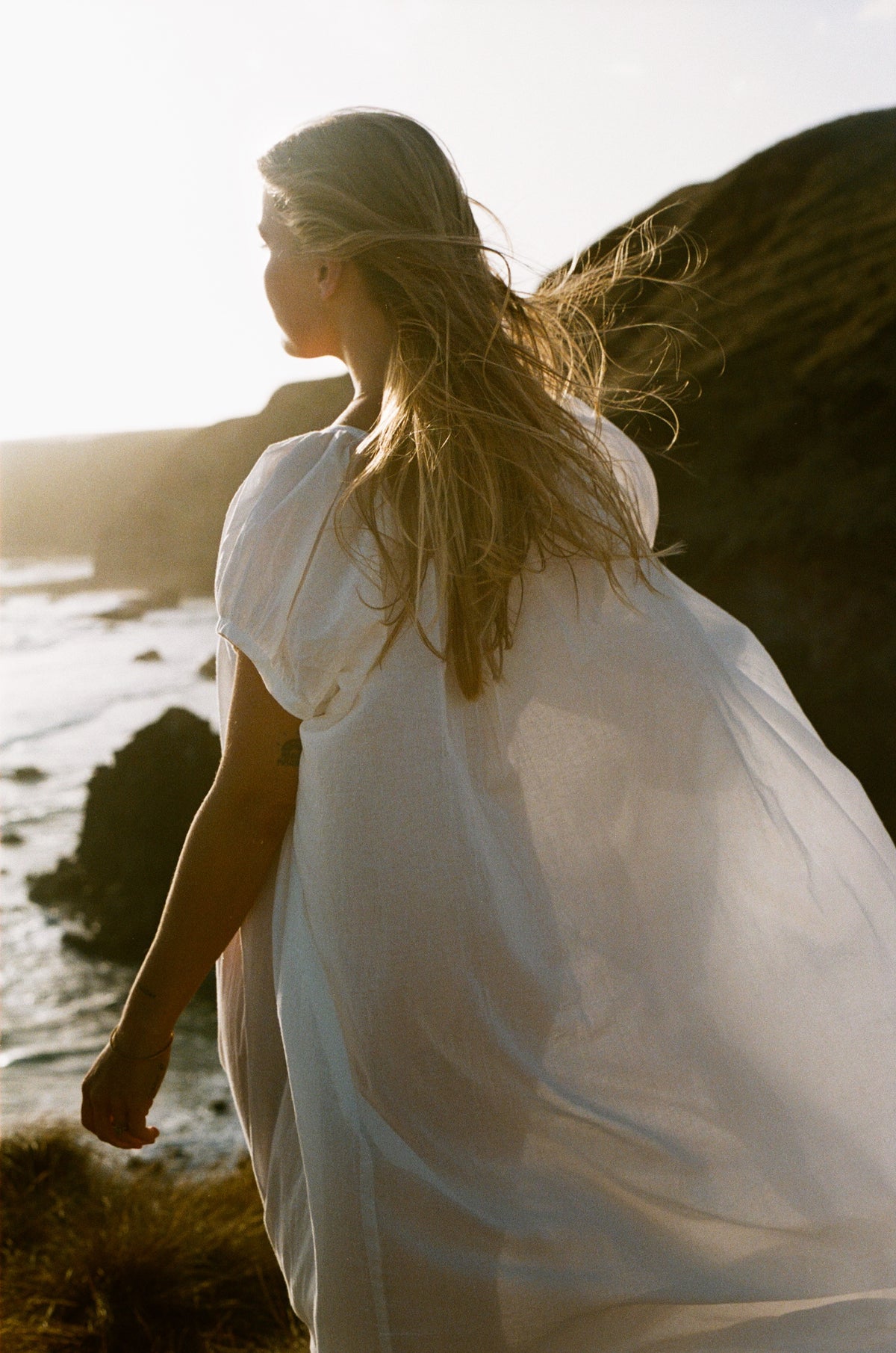 Forget Me Not was made for moments like this. Crafted from organic cotton voile, light enough to float, sheer enough to feel. A love letter to freedom, softness, and the quiet power of being fully, beautifully at ease.