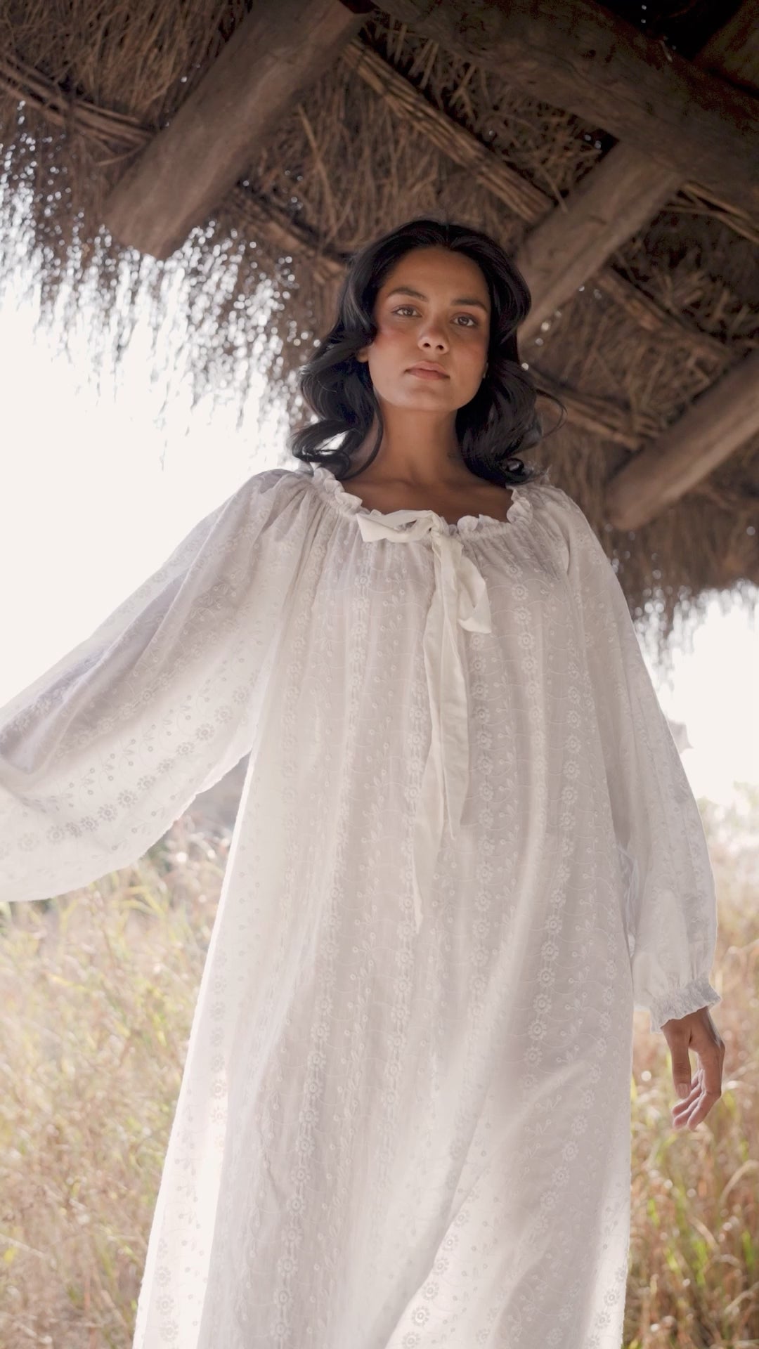 Crafted from embroidered organic cotton cambric, this piece is light, soft, and full of movement. Billowing sleeves add a sense of ease, while the delicate embroidered tie at the neckline allows for subtle adjustment to suit your mood. Effortless to wear, easy to love.